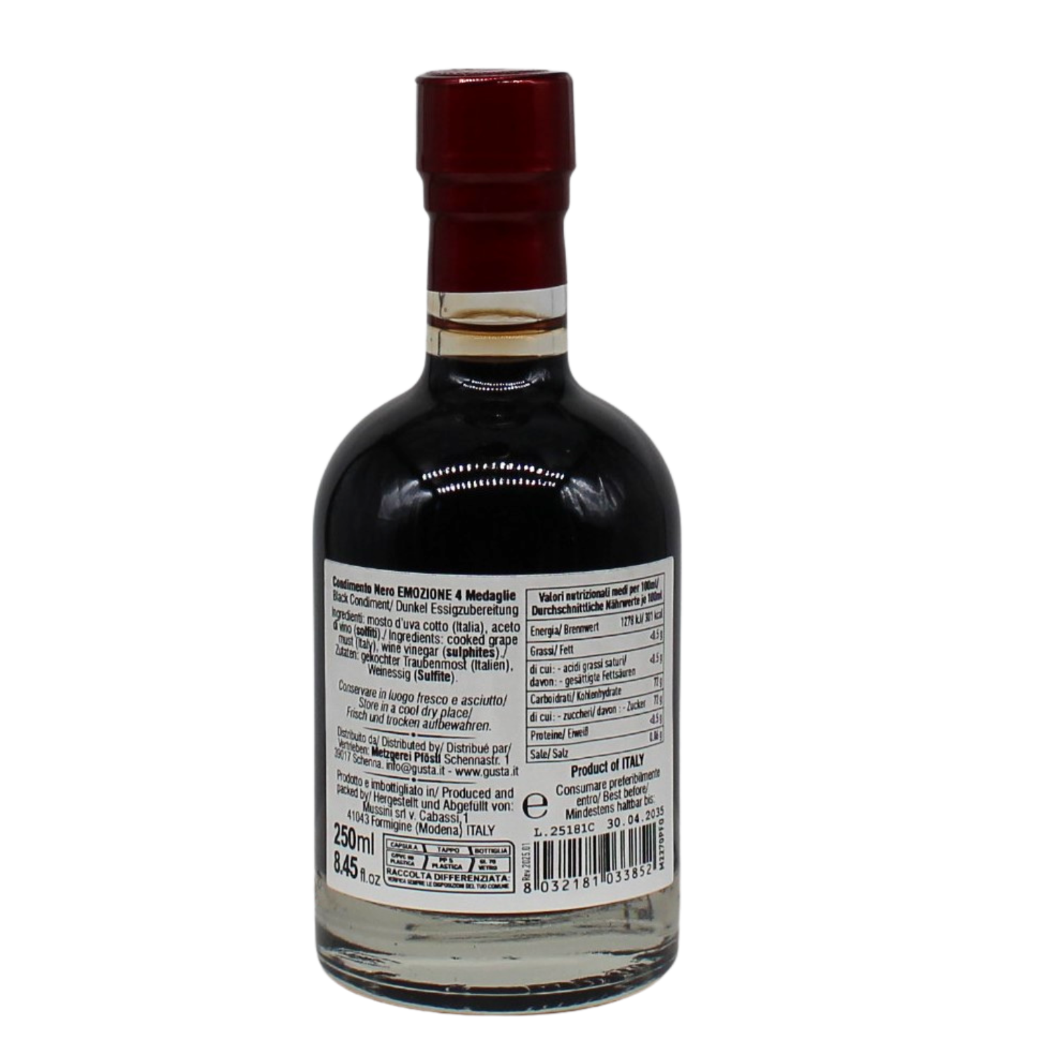 Intensives Dunkles Dressing (Balsamico) aus Lambrusco- und Trebbiano-Trauben, im Eichenfass gereift.