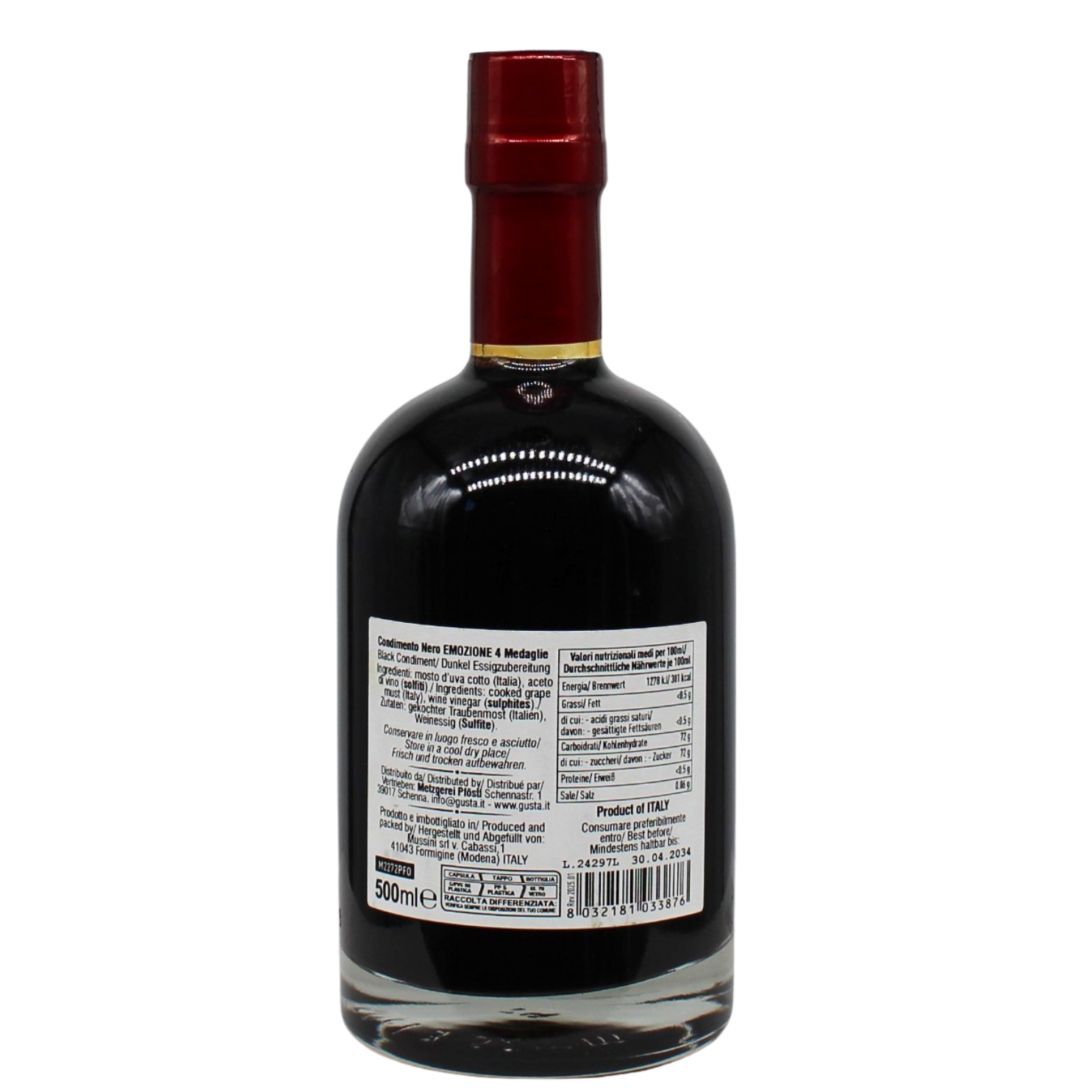Intensives Dunkles Dressing (Balsamico) aus Lambrusco- und Trebbiano-Trauben, im Eichenfass gereift.