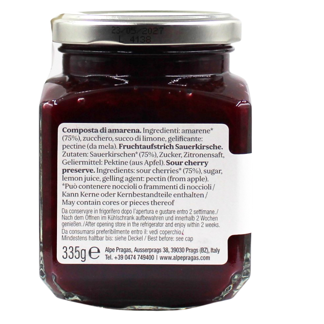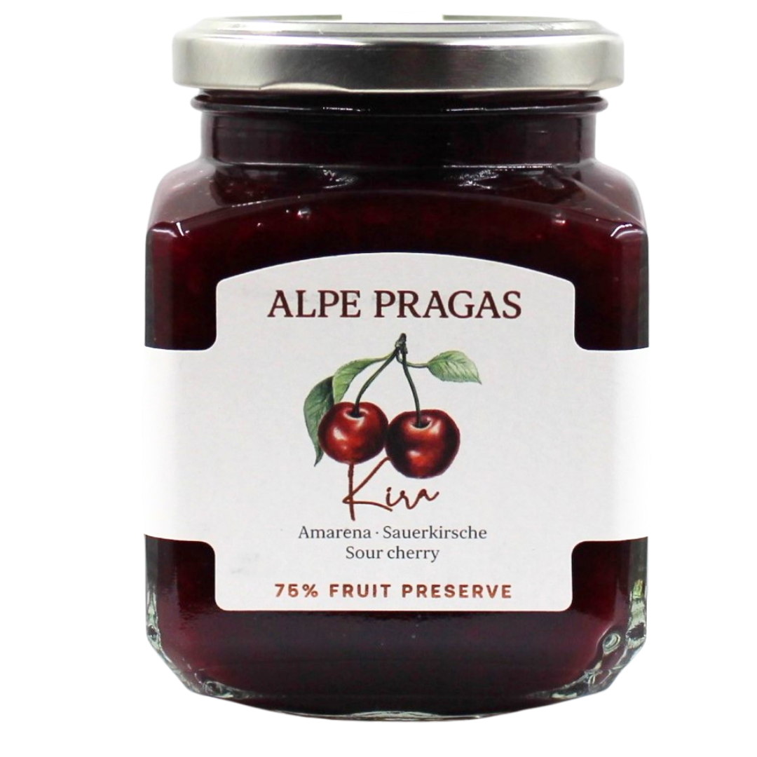 Produktinformationen "Fruchtaufstrich Sauerkirsch 335g Alpe Pragas"