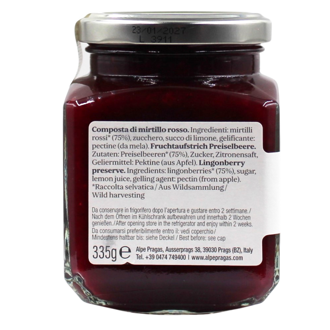 Fruchtaufstrich Preiselbeere 335g Alpe Pragas